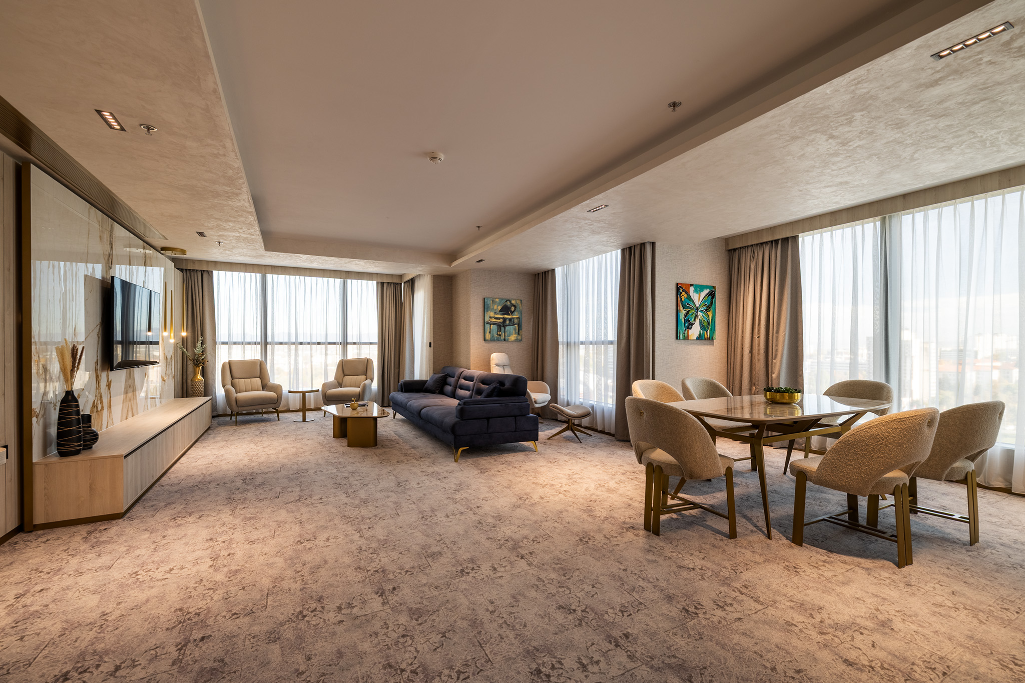 В East Plaza Hotel всеки етаж е замислен така, че да носи свое собствено усещане и стил на престой. Колкото по-високо се издигате, толкова повече пред вас се разкрива – от живата градска панорама до величествените линии на планините. На PLAZA FLOOR (4–7 етаж) ще откриете уют и комфорт, с гледки, които ви свързват с пулса на града и градските хоризонти наоколо. Тук е мястото за спокойно преживяване, в близост до динамиката, но далеч от шума. В SKY HIGH FLOOR (8–12 етаж) светлината и просторът са в изобилие, а панорамите – вдъхновяващи. Тук престоят носи усещане за престиж, свобода и лекота, с хоризонти, които се простират отвъд очакваното.